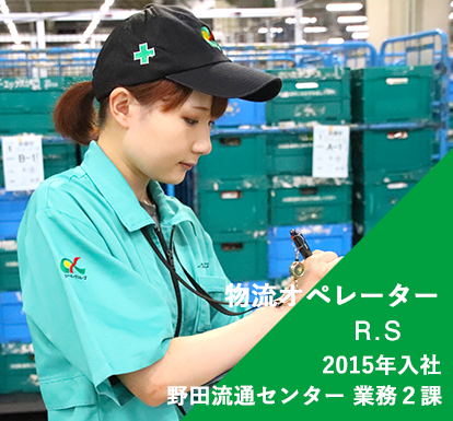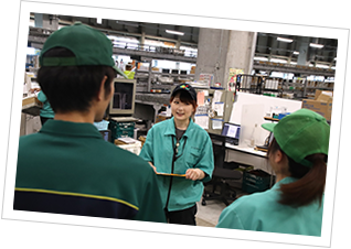 アルバイトとして入社し、その後正社員として登用され、現在は宅配・店舗向けの商品の仕分け作業を行う部署で班長を務めています。班長として、作業進捗管理や作業者のシフト管理を行い、物量に合わせた人員配置を心掛けています。